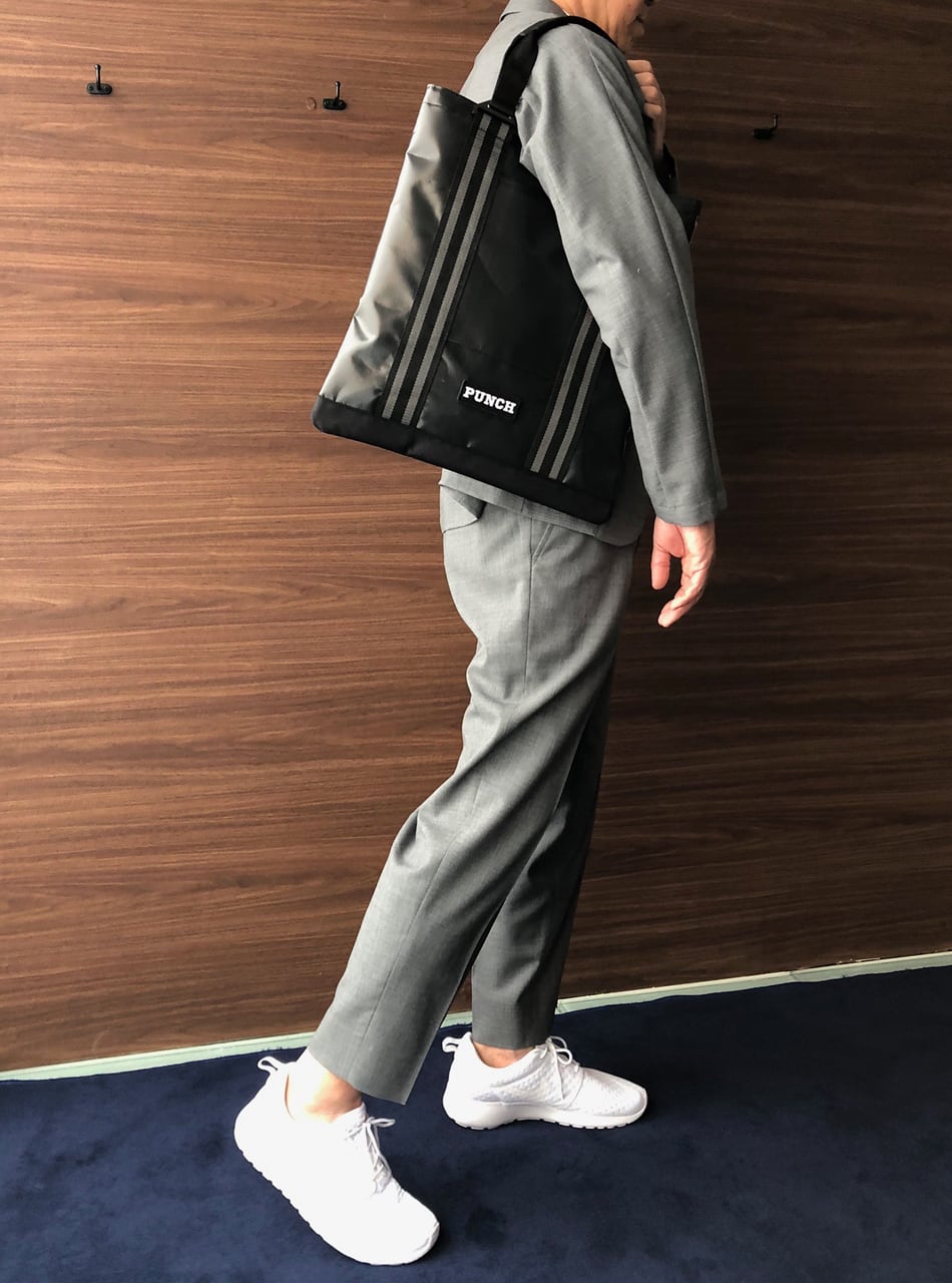 それぞれのデイリーユースグッズプラス、書類・セーター・ヘッドフォンなどが入るサイズで、 ちょっとした買い物にも便利です。 インナー片面に2ポケット、ペンポケットが施されています。 外に携帯ポケット付 ■サイズ ヨコ 38cm タテ 41cm *マチ無し ■生産国 日本 *フランス製ファブリック ■素材 基布 : ポリエステルPVC ■インナーポケット W120 H140 ポケット x 2 ペンホルダー x 3